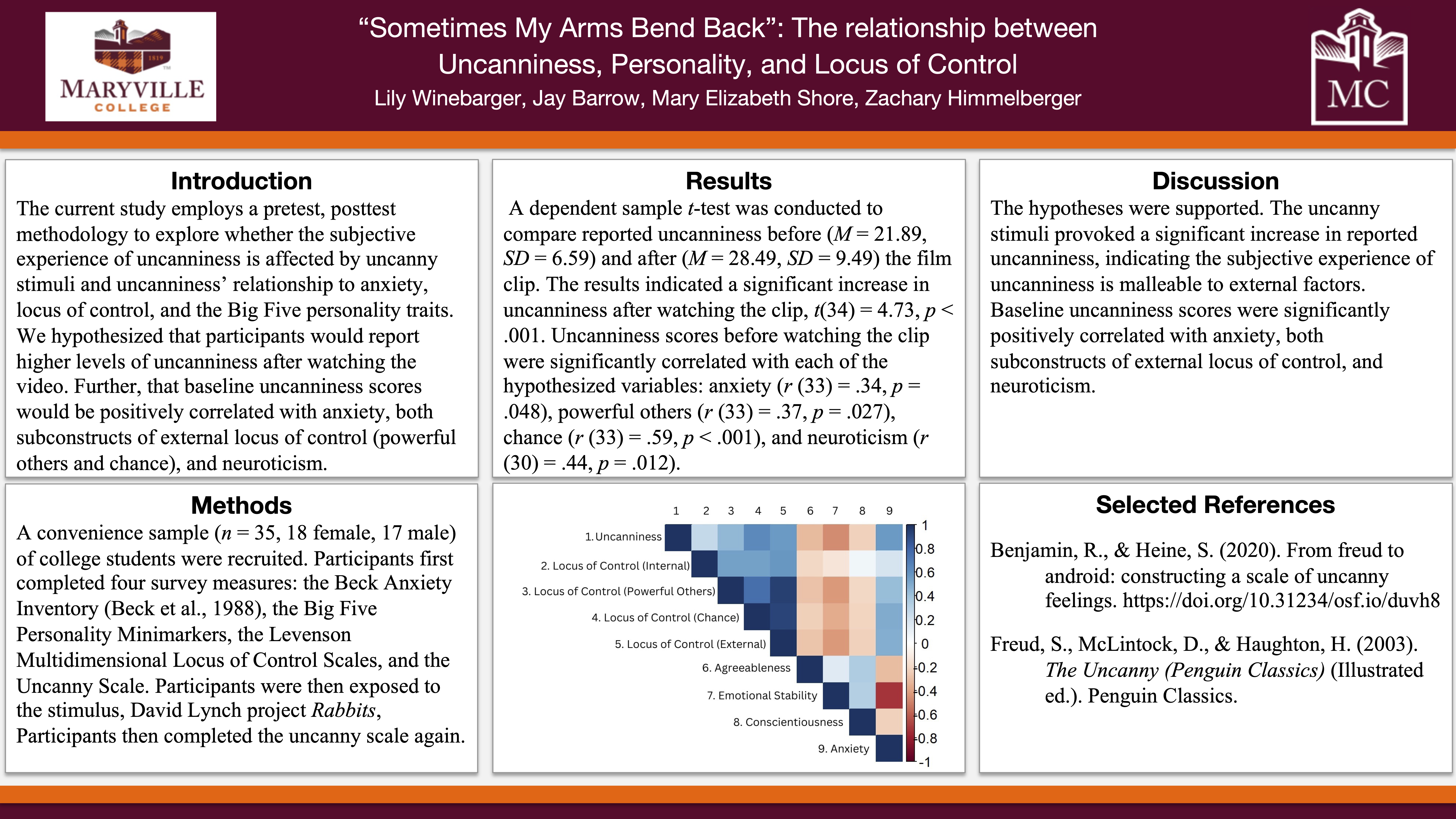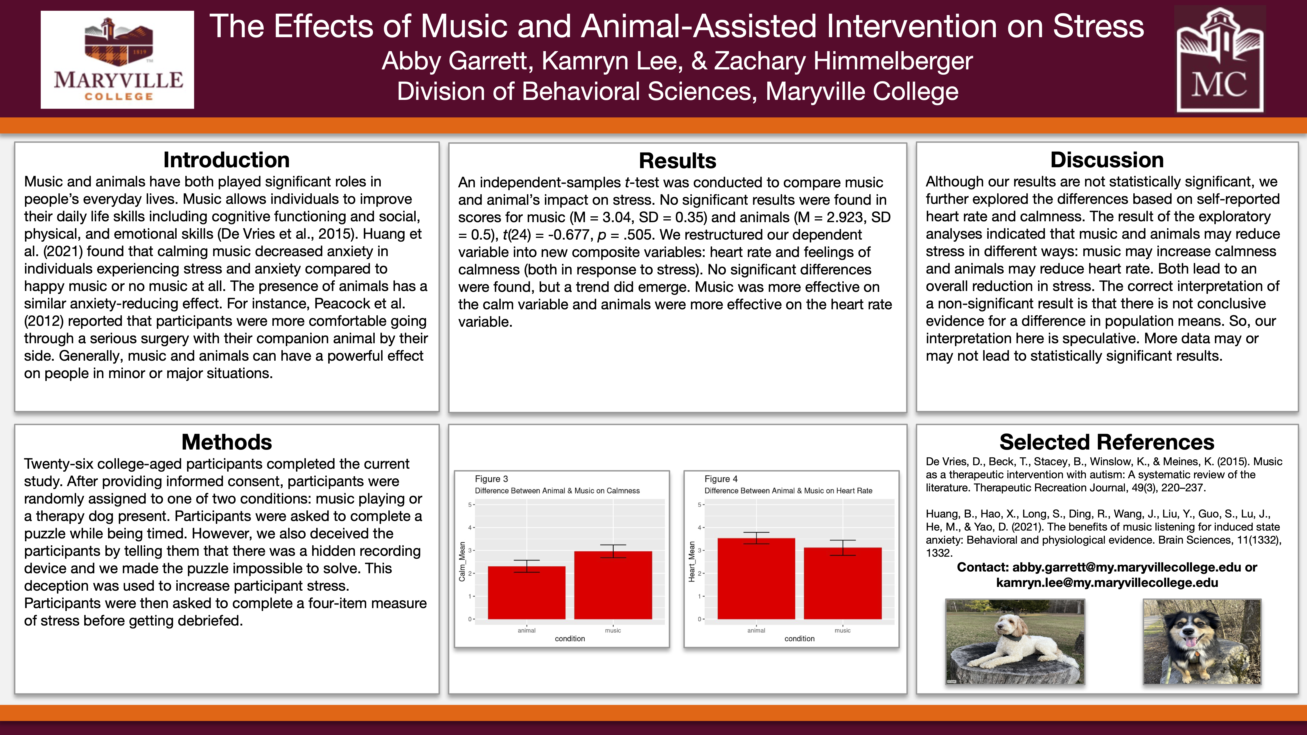 Because Maryville College does not have a graduate program in psychology, research assistants are expected to take on responsibilities that are more typical of a graduate student. They gain hands-on research experience that prepares them to thrive in graduate school. I expect all students in the lab to leave with the following skills and experiences:
